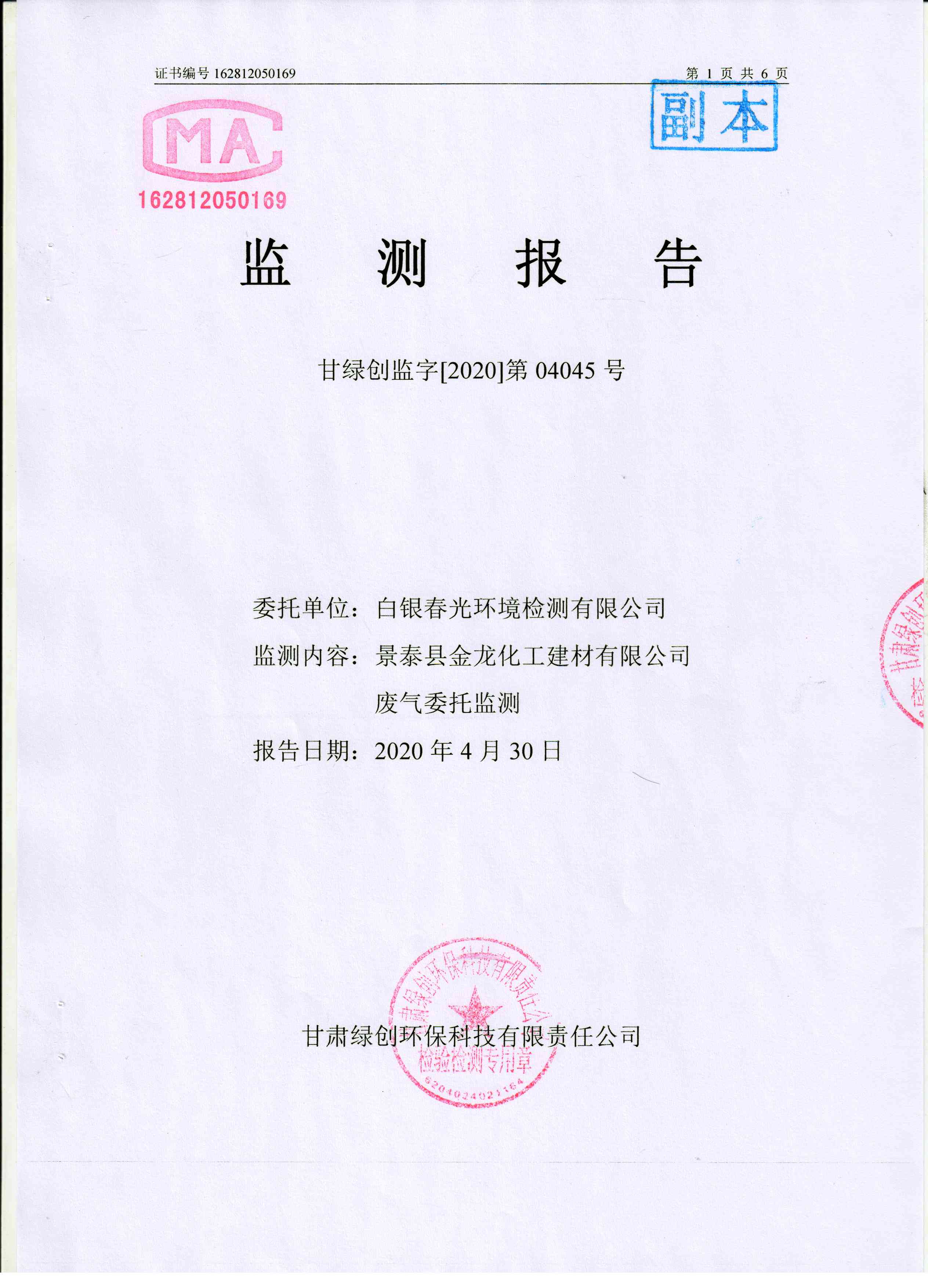 金龍公司2020年4月環(huán)保自行監(jiān)測結(jié)果公示