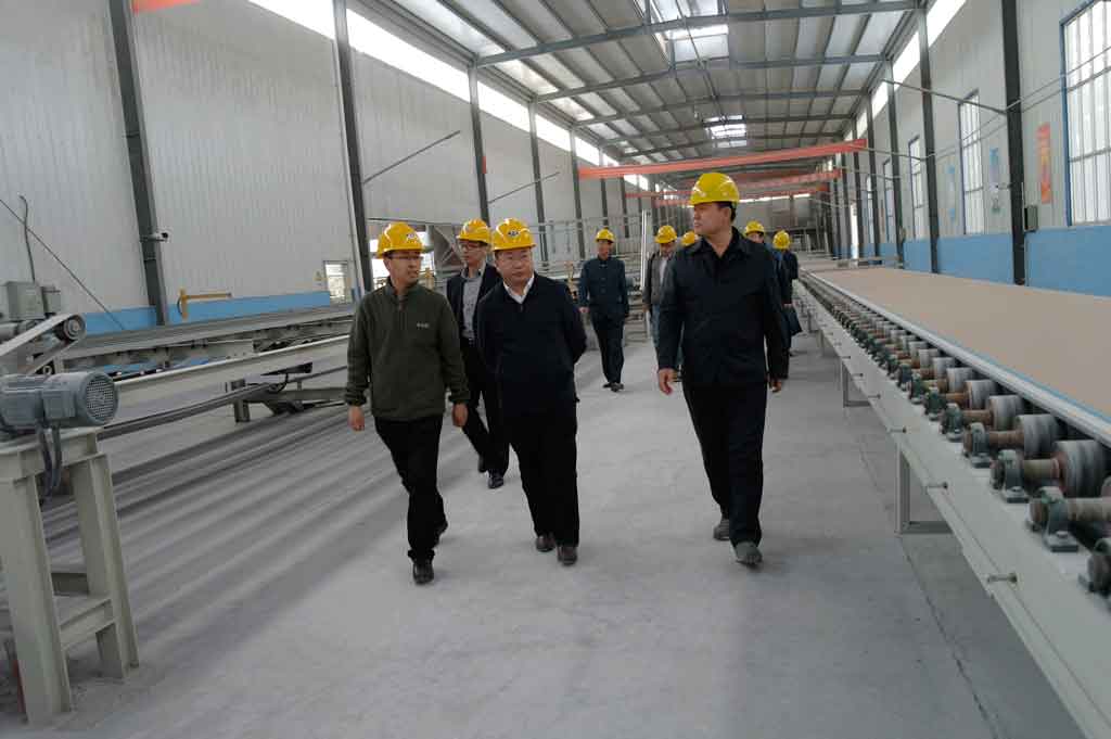 2016年4月20日上午九時許,甘肅省省委領(lǐng)導(dǎo)相關(guān)部門領(lǐng)導(dǎo)和景泰金龍建材公司的主要負(fù)責(zé)人王金鵬、徐亮等的陪同下蒞臨我公司檢查指導(dǎo)加筋高強紙面石膏板的生產(chǎn)情況。