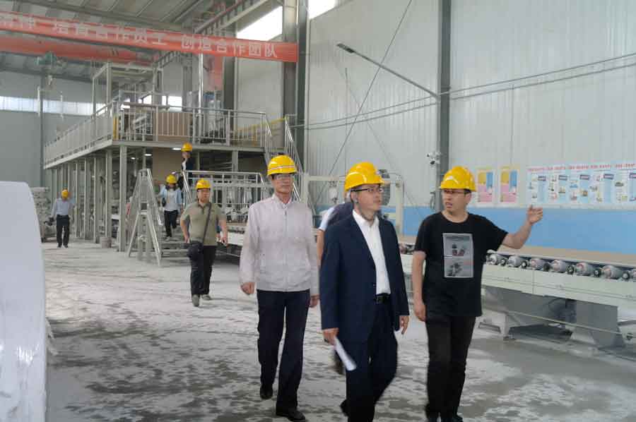 6月7日上午10時許,白銀市組織部檢查小組在我公司常務總監(jiān)徐總、網絡部一行人員等的陪同下,蒞臨我公司三線紙面石膏板生產車間參觀指導公司新品耐水、耐火高檔紙面石膏板的生產情況。